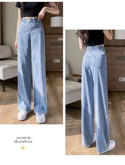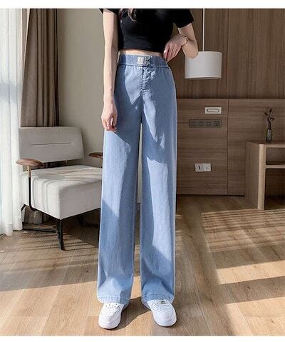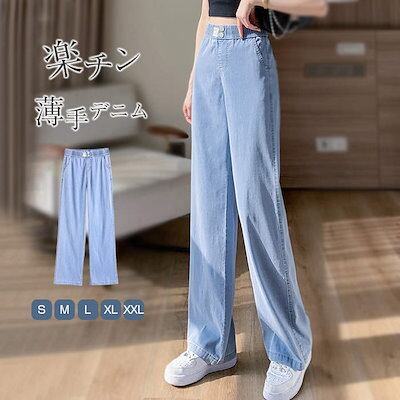 2024新作 パンツ レディース デニム ワイドパンツ 夏 接触冷感 ひんやり ボトムス 長ズボン ガウチョパンツ スカーチョ 紫外線対策 薄手 ウエストゴム 体型カバー 春 無地 着痩せ 美脚 通勤