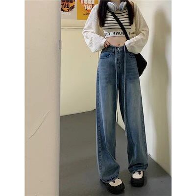 春 夏レトロ ジーンズ レディース 新作 ハイウエスト ワイドパンツ スリム見え オールマッチ ストレート ドレープ感 流行りひんやりボトムス 2025福袋
