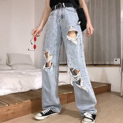 ひんやりボトムス デニムボトムスショートパンツ即納夏服 ハイウエスト デニム ワイドパンツ ストレート ゆったり ダメージジーンズ 着痩せ 美脚 涼しい準備したいレイングッズ 脚長效果