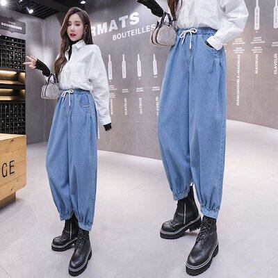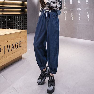 デニムボトムス 春 デニムパンツ 韓国ファッション ゆったり ジーンズ レディース ハイウエスト着痩せ デニム ワイドパンツ体型カバー