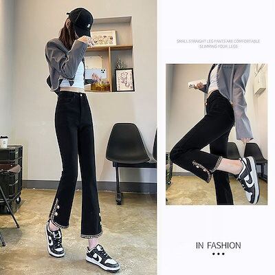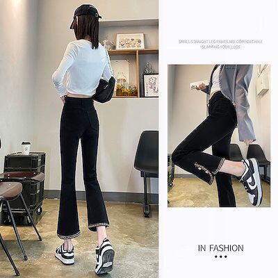 デニムボトムス ワイドパンツ 韓国ファッション ジーンズ レディース デニム ズボン 春冬春 ハイウエスト パンツ フレアパンツ美脚