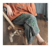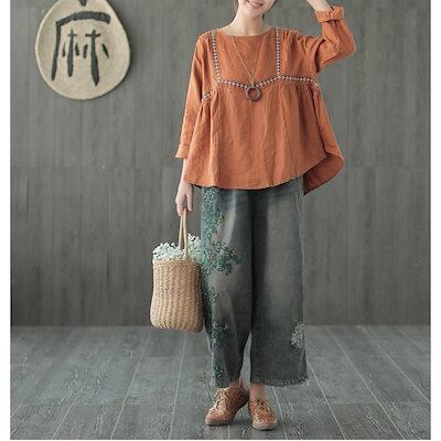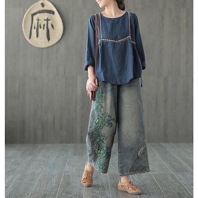 花柄刺繍 サルエルパンツ デニムパンツ ワイドパンツ バギーパンツ ガウチョパンツ レディース ウエ
