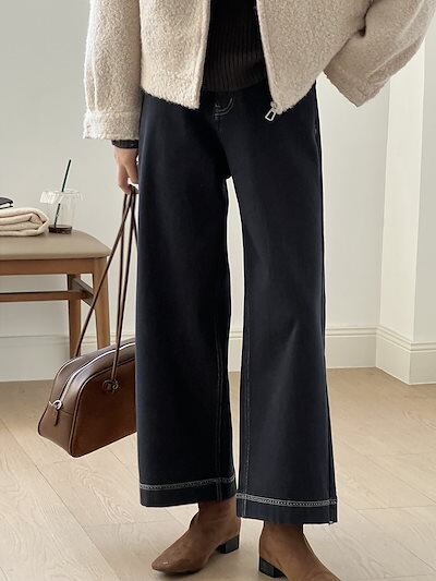 ジーンズ レディース 2024 秋冬 ゆったり ワイドパンツ ストレートパンツ 9分丈パンツ パッド入り 厚手