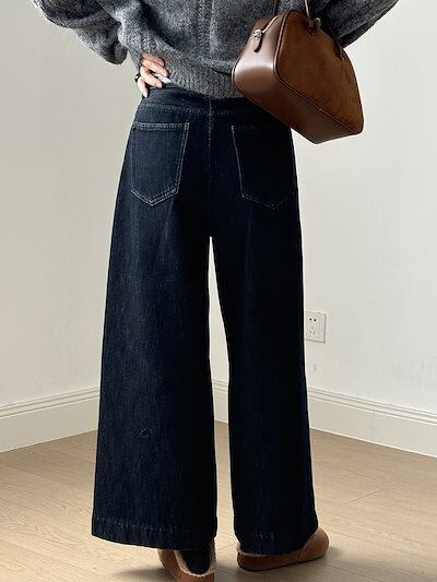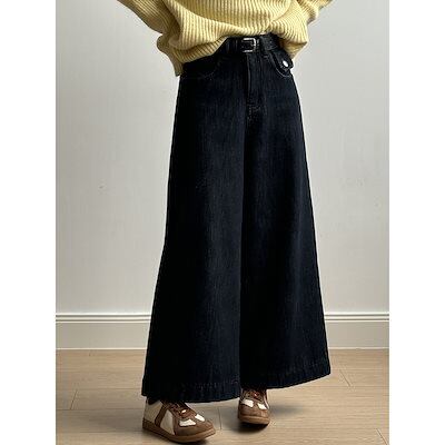 ハイウエスト レトロ パッド入り ワイドパンツ ジーンズ レディース 2024 冬 カジュアル ストレート パンツ ベルト付き