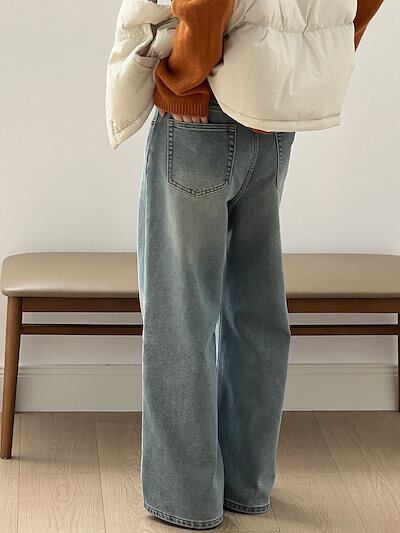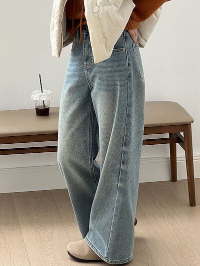 ハイウエスト ストレート ワイドジーンズ レディース 2024 秋冬新作 ゆったり ジーンズ パンツ ベルト付き
