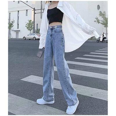 大人気 上品 デニムパンツ レディース ワイドパンツ ジーパン ジーンズ ワイドルック ゆったり ロングパンツ ハイウエスト カジュアル ボトムス