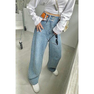 Kashi デニムパンツ ゆったり ワイドパンツ 着痩せ ジーパン ジーンズ ストレート レディース 3