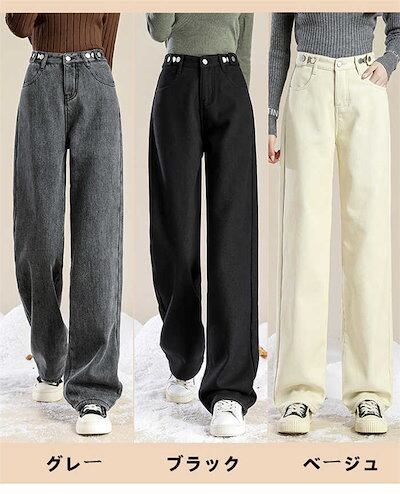 裏ボアワイドパンツデニムパンツレディースロングパンツ裏起毛ボトムIスデニムジーンズガウチョパンツ体型カバーロングパンツ大きいサイズ着痩せ脚通勤ゆったり上品きれいめ通勤L防寒暖かい厚3040