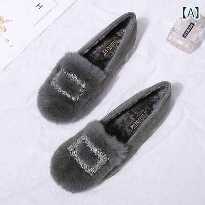 パンプス もこもこ スリッポン キラキラ ビジュー ぺたんこ シューズ 韓国系 可愛い レトロ 個性的 黒 グレー スエード風 革靴 合皮 柔らかい フラット モコモコ ローファー 大きいサイズ 25