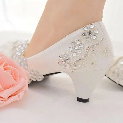 ウエディングシューズ ブライダルシューズ パンプス ヒール8センチ/4.5センチ/ぺたんこ ハイヒール 手作り レース 美脚 キラキラ 豪華 パーティー 結婚式 発表会 二次会 大きいサイズ 22.0