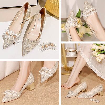 パンプス 痛くない 結婚式レディース ポインテッドトゥパンプス シューズ キラキラ ウェディングシューズ ハイヒール ピンビール パンプス ブライダルシューズ ラインストーン パーティー キャバ嬢 発