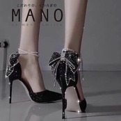 【MANO.上品】ブラックスワン ハイヒール ダイヤモンド飾り ピンヒール 黒鳥 蝶結び キラキラ 綺麗 上品 本革 レディース ヒールパンプス30%までに制限