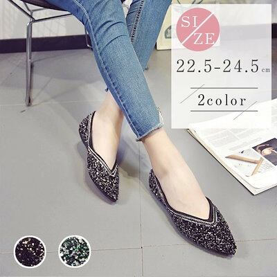 パンプス ローヒール キラキラ パンプス 痛くない 柔らかい フラット バレエシューズ レディース ポインテッドトゥ パンプス 歩きやすい