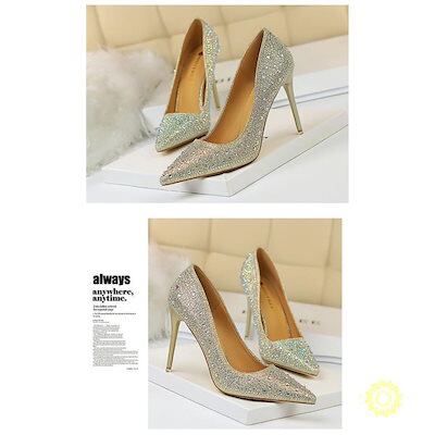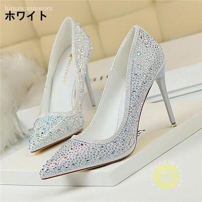 レディース ハイヒール パンプス 美脚 疲れない ラインストーン キラキラ ヒール 結婚式 通勤 シンプル 二次会 フォーマル 歩きやすい レディース靴