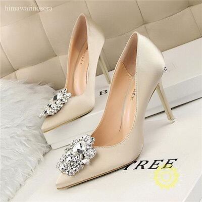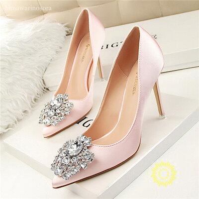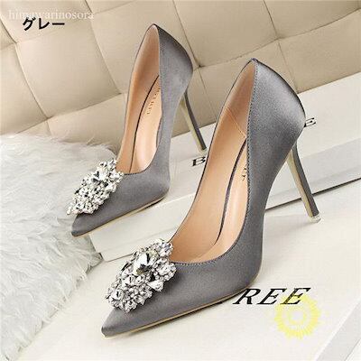 パンプス レディース ハイヒール パンプス ラインストーン キラキラ ハイヒール ピンヒール 疲れない ポインテッドトゥ 結婚式 就活