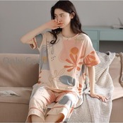 パジャマ ルームウェア レディース 春夏 半袖 パジャマ ルームウェア 花柄 七分丈ワイドパンツ上下セット 可愛いパジャマ 女性 部屋着 寝間き大きいサイズ 快適