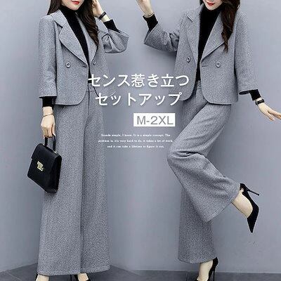 セットアップ レディース スーツ パンツスーツ セレモニー ママセット ビジネススーツ 洗える 大きいサイズ フォーマル テーラードジャケット&ワイドパンツ 2点セット 入学式 卒業式 入園式