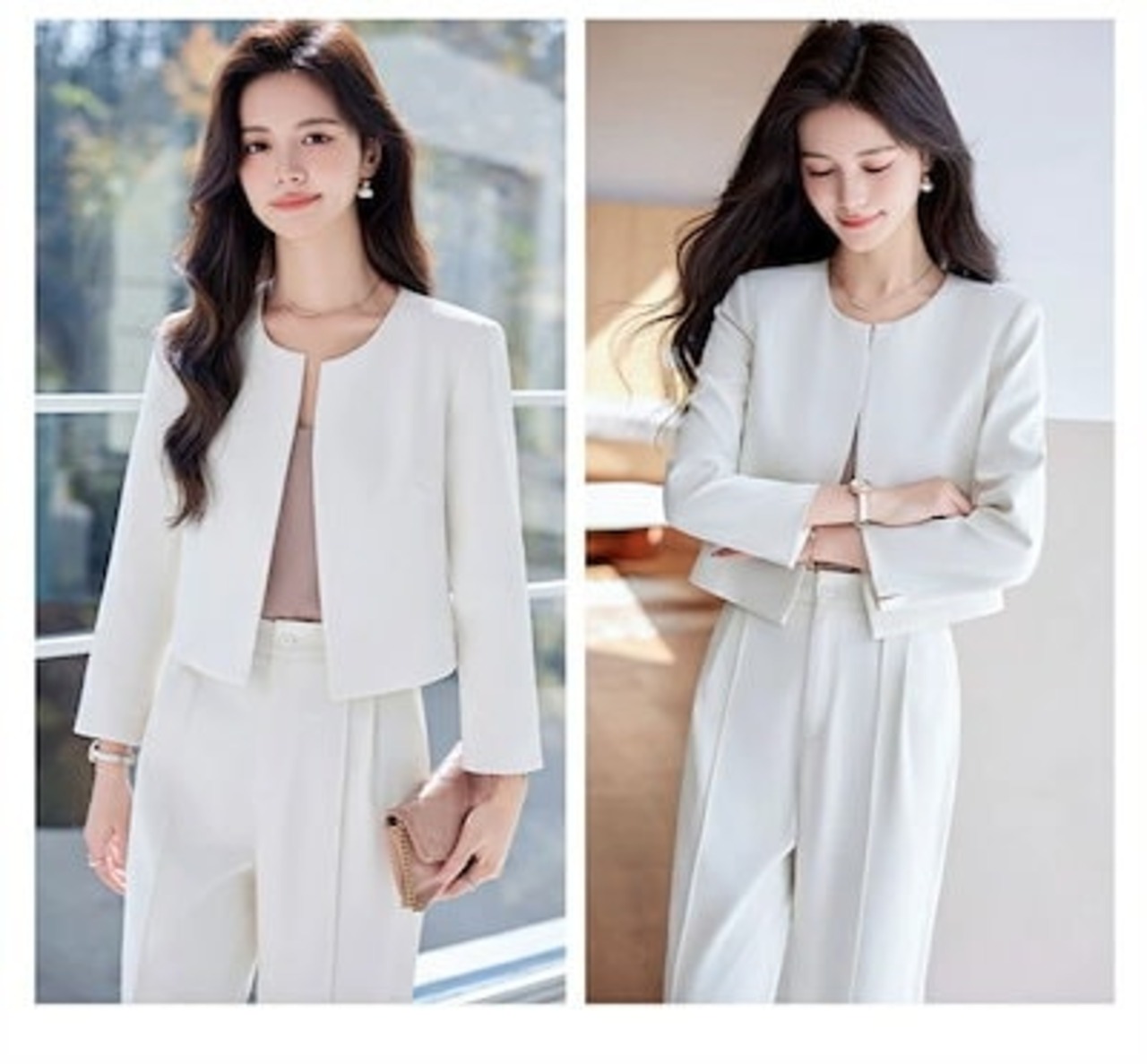 セットアップ スーツ レディース パンツスーツ フォーマル セレモニー ビジネススーツ 洗える 大きいサイズ テーラードジャケット&ワイドパンツ ノーカラージャケット 2点セット ママスーツ 入学式