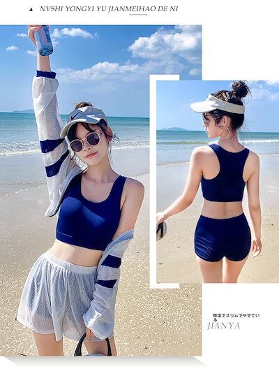 水着 レディース 体型カバー 中学生 高校生 10代 スポーティー 可愛い スイムウェア 4点セット
