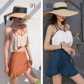 レディース 水着 体型カバー 水着 レディース タンキニ セパレート 3点セット 露出控えめ 可愛い 韓国 小胸 水着 スカート 学生 大人 水着 女性 ママ水着 スイムウェア リゾート ビーチ 温