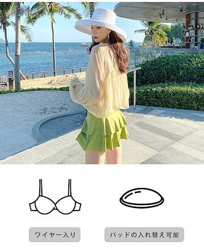 水着 体型カバー タンキニ 韓国 水着 レディース 小胸 緑 水着 セパレート 露出控えめ 大人 水着 体型カバー 可愛い 長袖 日焼け防止 海 プール 温泉 リゾート ビーチ