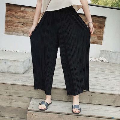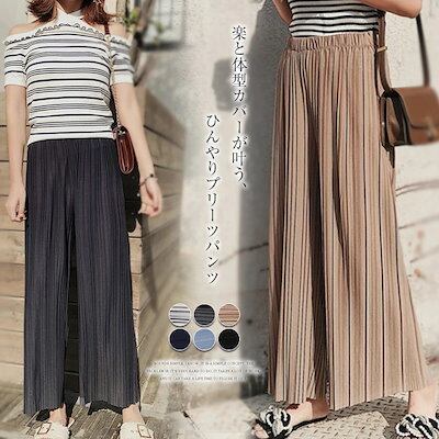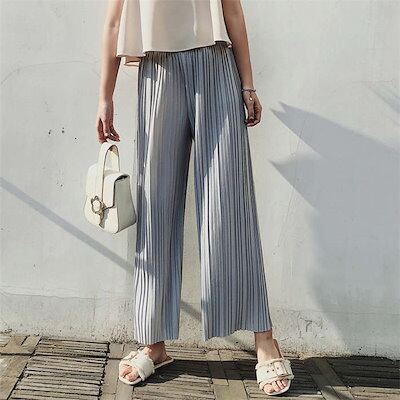 ワイドパンツ レディース きれいめ パンツ ボトムス 夏 春 ロングパンツ プリーツパンツ ストレッチパンツ イージーパンツ 部屋着 大きいサイズ おしゃれ ワイド プリーツ ウエストゴム ハイウエス