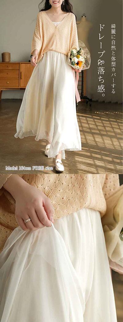 ワイドパンツ ガウチョパンツ シフォンパンツ レディース 夏 春 ハイウエスト 大きいサイズ ロング丈 ワイド パンツ スカンツ スカーチョ シフォン ボトムス 無地 ウエストゴム ふんわり 体型カバ