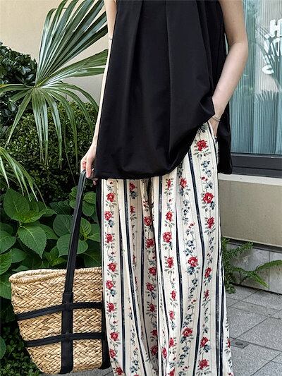 花柄パンツ レディース ワイド ワイドパンツ 夏 涼しい ひんやり ガウチョパンツ イージーパンツ 花柄 総柄 大きいサイズ ゆったり ゆる ボトムス 春夏 ロングパンツ マキシパンツ マキシ丈 体型