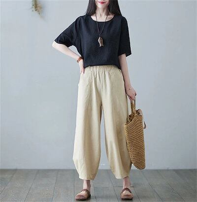 バルーンパンツ レディース サーカスパンツ リネン ワイドパンツ サルエルパンツ コクーンパンツ リネンパンツ カーブパンツ 春 夏 薄手 大きいサイズ ゆったり 切り替え ボトムス 九分丈 綿麻風