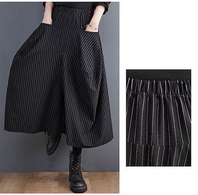 ワイドパンツ レディース 大きいサイズ 秋冬 きれいめ スカート 個性的 ゆったり ストラップ ワイド パンツ 秋 冬 カジュアル ガウチョパンツ スカート ウエストゴム 美脚パンツ ボトムス 着痩せ
