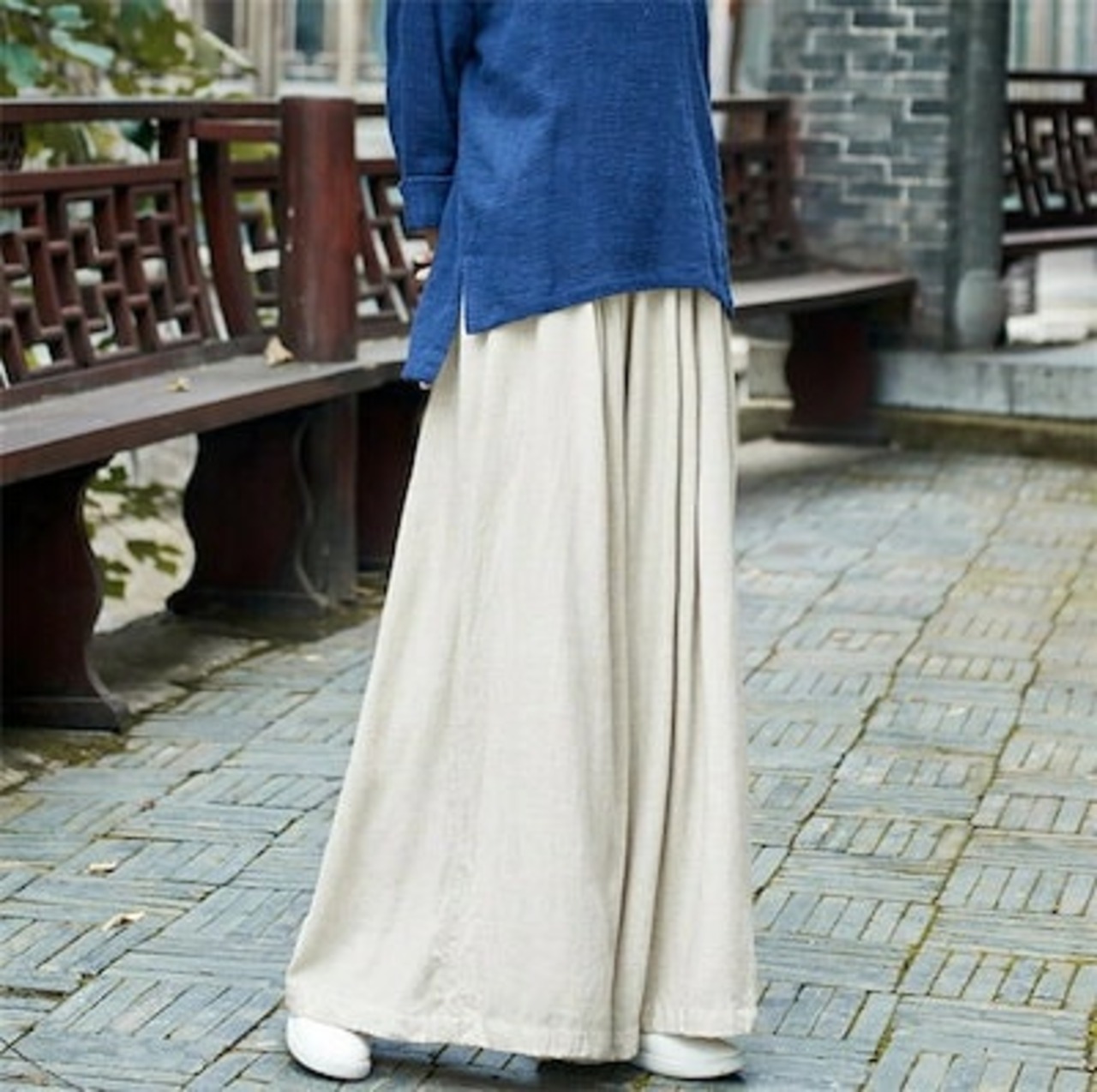 ワイドパンツ レディース ガウチョパンツ レディース 秋冬 春 夏 大きいサイズ ゆったり ボトムス 綿麻混 コットンリネン フレアパンツ 体型カバー ウエストゴム 無地 リラックス 着痩せ 美脚 通