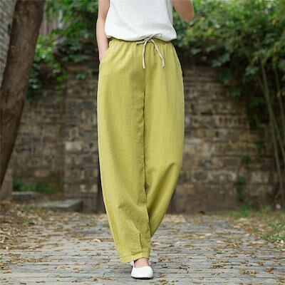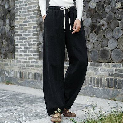 バルーンパンツ レディース ワイドパンツ 秋 春 大きいサイズ ゆったり ボトムス 綿麻混 コットンリネン コクーンパンツ サーカスパンツ 体型カバー ウエストゴム 無地 リラックス 着痩せ 美脚 通
