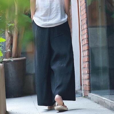 綿麻混パンツ ワイドパンツ スカーチョ ガウチョパンツ ボトムス レディース ワイド パンツ 無地 ロング リネンパンツ 綿麻 リネン 体形カバー 大きいサイズ ゆったり 夏パンツ カジュアル 大人