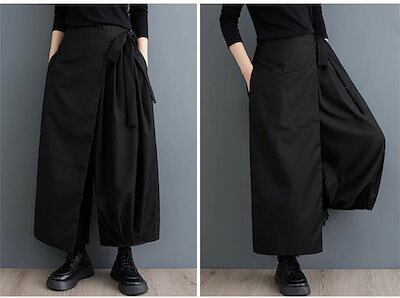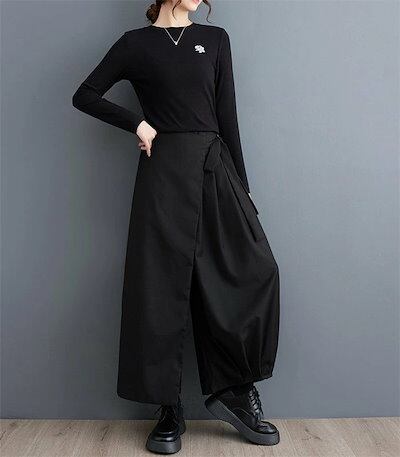 アシンメトリー ガウチョパンツ レディース スカート風 ワイドパンツ タック スカーチョ 秋冬 イージーパンツ ロングパンツ 春 秋 大きいサイズ ゆったり ボトムス 九分丈 ふんわり ウエストゴム