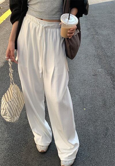 スウェットパンツ レディース タックパンツ ロングパンツ ゆったり リラックス イージーパンツ タック パンツ ワイド スウェット ボトムス ロング丈 ワイドパンツ ウエストゴム 綿 コットン 大きい