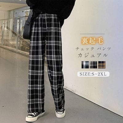 チェック パンツ 裏起毛 秋冬 レディース ワイドパンツ カジュアル 長ズボン 裏起毛 チェックパンツ 美脚パンツ ボトムス 着痩せ 大きいサイズ ハイウエスト ウエストゴム おしゃれ きれいめ チノ