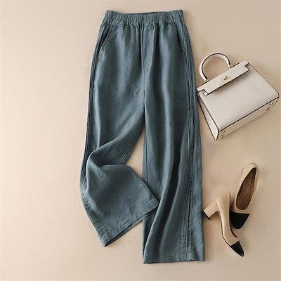 綿麻 ワイドパンツ レディース 夏 パンツ ワイド きれいめ 綿 麻 春 夏 コットンリネン 大きいサイズ ゆったり 薄手 ボトムス 体型カバー ウエストゴム リラックス ロング丈 リネンパンツ 美脚