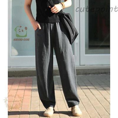 ワイドパンツ 綿麻調 イージーパンツ レディース 春 秋 ガウチョパンツ 体型カバー おしゃれ ゆったり カジュアル ナチュラル 体型カバー 大きいサイズ