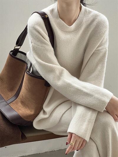 ニット セットアップ レディース 秋冬 冬 春 セットアップ ニットセーター プルオーバー ワイドパンツ ニットセットアップ ニットパンツ ロングパンツ 長袖 ゆったり リブニット カジュアル 大きい