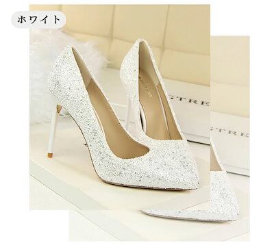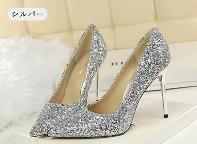 ハイヒール パンプス/パンプス レディース ポインテッドトゥパンプス キラキラ ウェディングシューズ キャバ ヒール ピンビール パンプス ブライダルシューズ ラインストーン