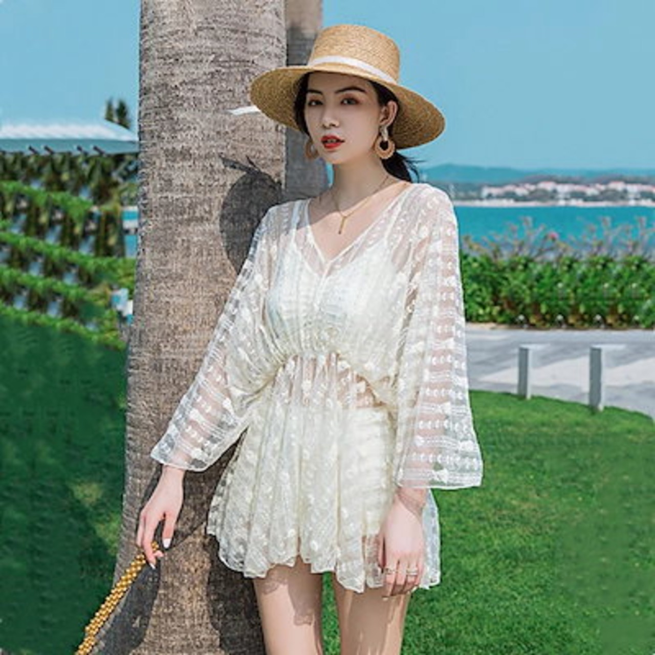 【メガ割 】水着 レディース 体型カバー ワンピース 3点セット カーディガン セクシー パット付き レース お