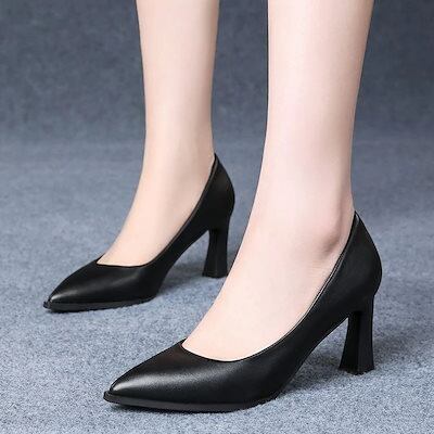 メガ割 韓国ファッションヒールパンプス 甘皮滑り止め単靴ワーキングシューズ黒マナー職業面接ハイヒール中ヒール通勤靴