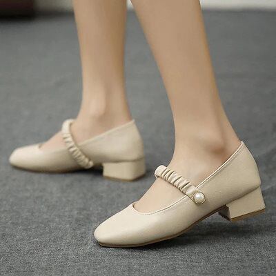 メガ割 スタイルアップヒールパンプス チャンキーヒールのレトロな女性の靴