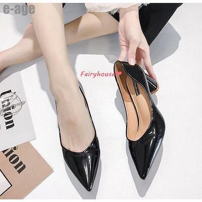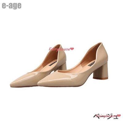 超人気 パンプス ポインテッドトゥ シューズ レディース 春夏 太めヒールパンプス エナメルパンプス ハイヒール 美脚 履きやすい 痛くない 靴 通勤 結婚式 パーティー