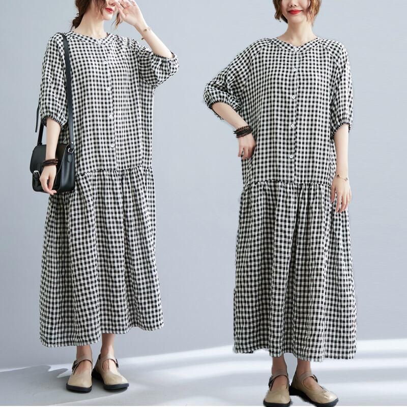 初回送料無料夏新作レデイーストップスブラウスワンピース格子ゆったりサイズ人気シングルブレスト
