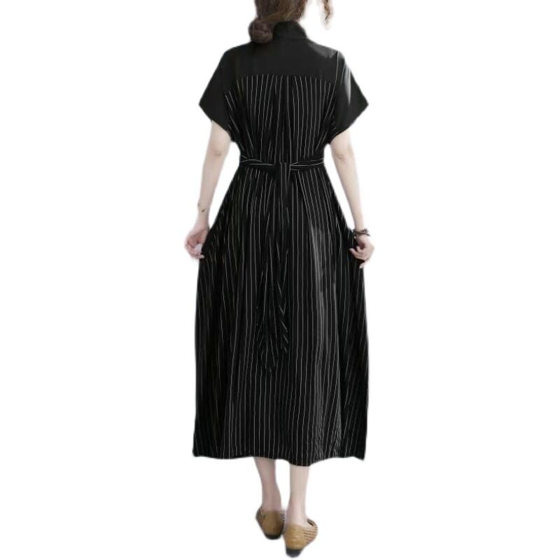 初回送料無料夏新作レデイーストップス スカートロングドレスVネックの細いストライプワンピース