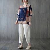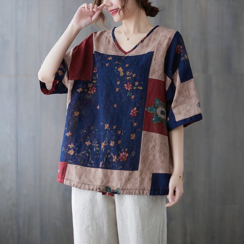 初回送料無料夏新作レデイーストップス ブラウス ゆったりサイズTシャツVネックコットンリネン