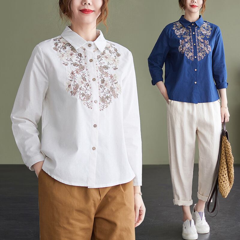 初回送料無料ゆったりサイズシャツ刺?シャツ長袖レディースファショントップス