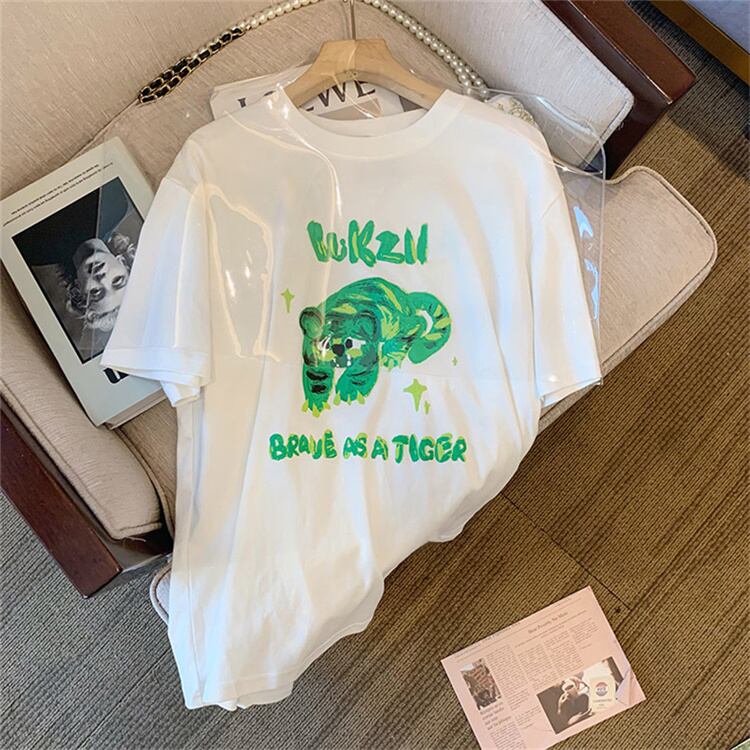 初回送料無料レターラウンドネックラージサイズプリント夏Tシャツブラウストップス