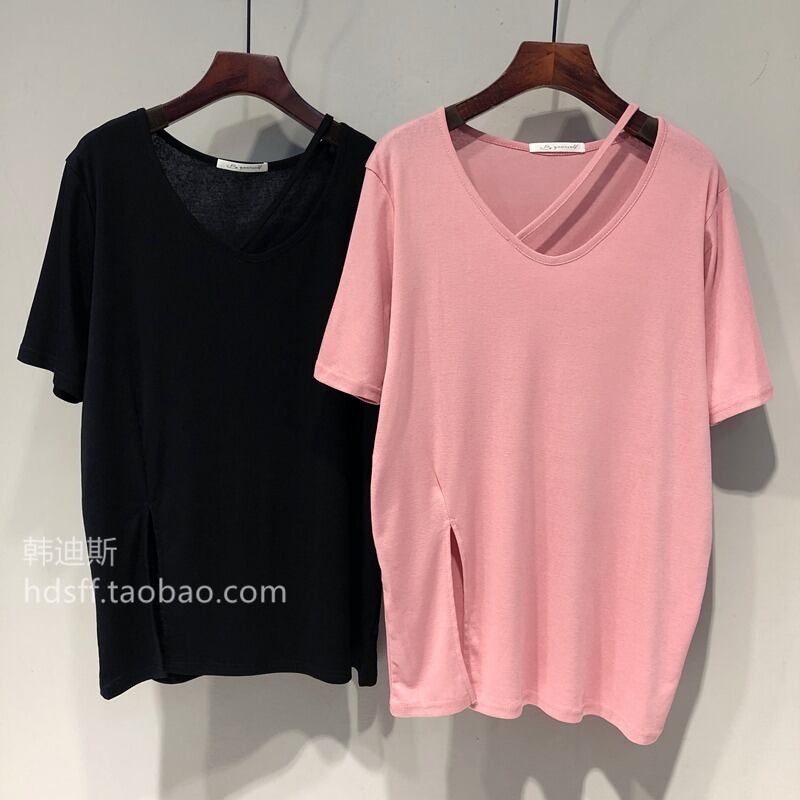 初回送料無料大きいサイズのゆったりサイズTシャツスリット夏ブラウストップス